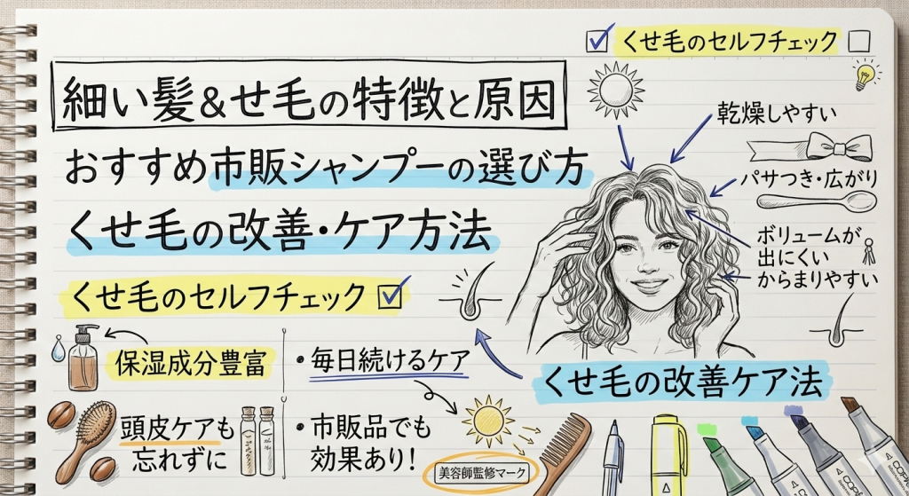 細い髪くせ毛におすすめの市販シャンプーの選び方と改善ケア方法