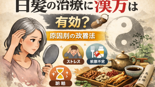 白髪 白髪の治療に漢方は有効?原因別の改善法 白髪の原因は加齢だけではありません。漢方による白髪治療の考え方や、原因別の改善アプローチ、生活習慣の見直しポイントを詳しく紹介。 2026.02.04 白髪