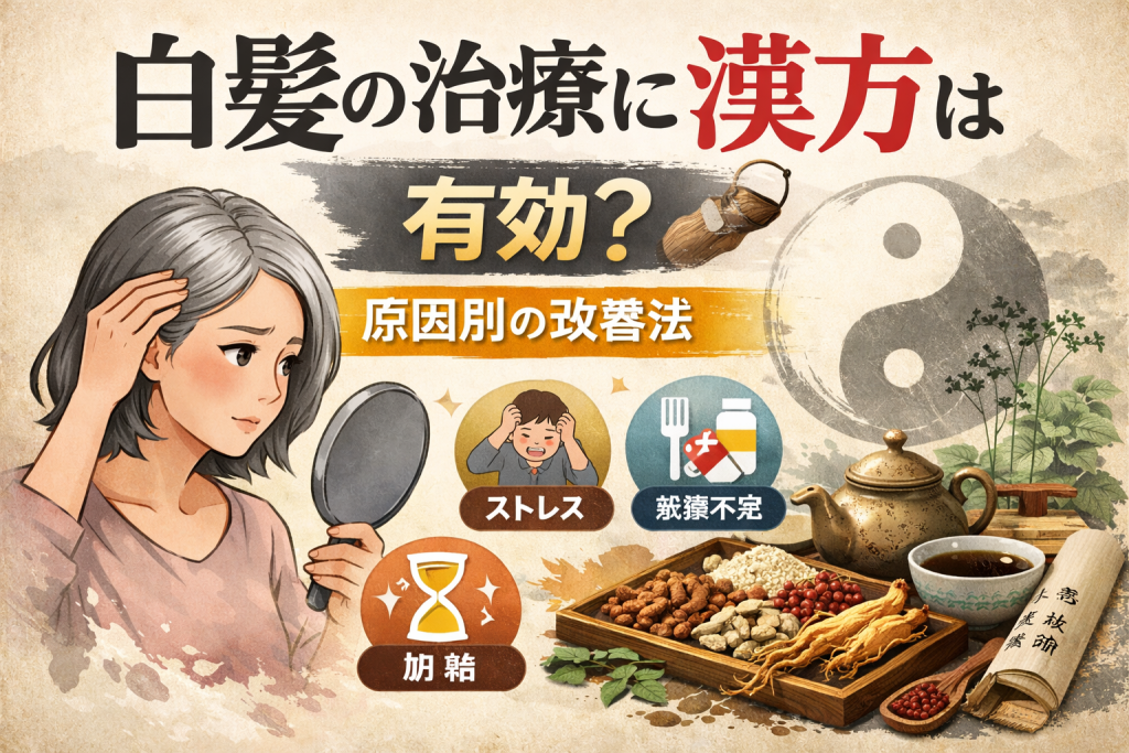 白髪は加齢だけでなく、体質や生活習慣、ストレスなど複数の要因が重なって発生します。近年では「白髪の治療に漢方は有効なのか」と検索する人が増えており、西洋医学とは異なるアプローチに注目が集まっています。本記事では、白髪が生じる仕組みを整理... -
