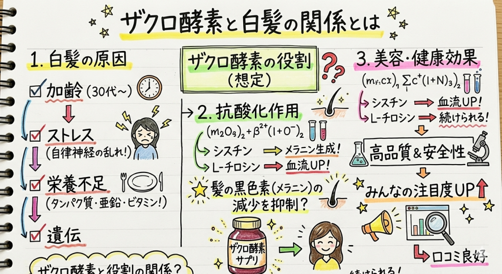 ザクロ酵素は抗酸化成分を含み、頭皮環境の維持に寄与する可能性はあります。しかし、現時点で白髪を確実に改善する医学的根拠は十分ではありません。