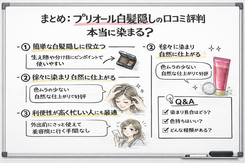 即効性・手軽さ・安心感を重視する人にとって、プリオール白髪隠しは非常にバランスの取れた選択肢です。