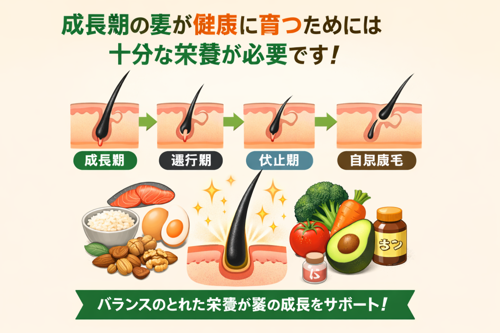 このヘアサイクルの中で、成長期の髪が健康に育つためには十分な栄養が必要です。
