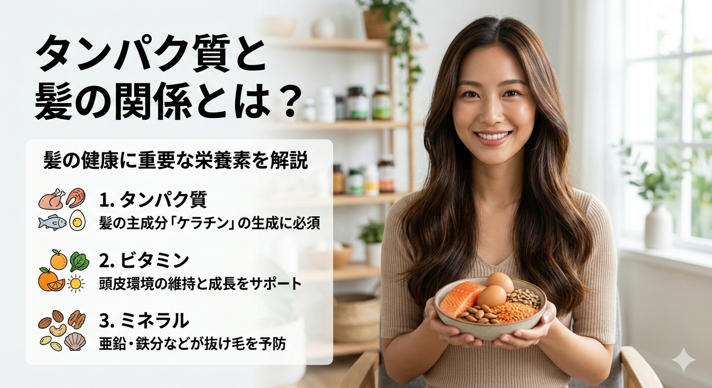 髪の健康にはタンパク質だけでなく、他の栄養素も重要です。