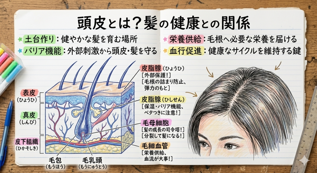 この記事では、頭皮の役割、髪との関係、頭皮環境を整えるための基本的なポイントについてわかりやすく解説します。