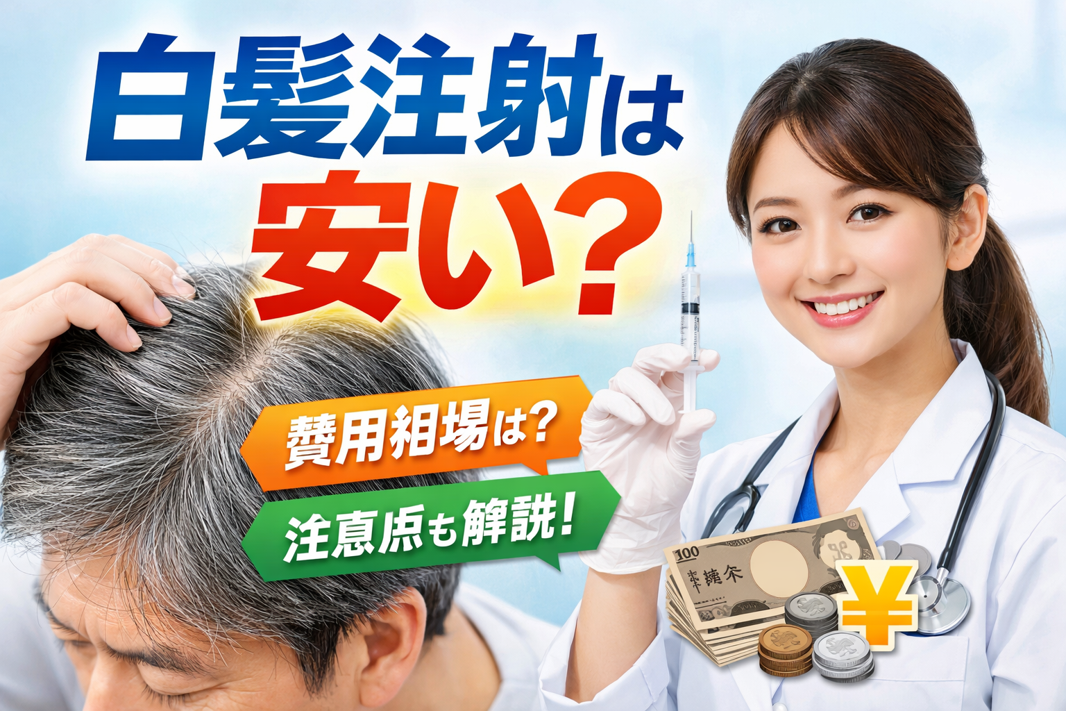 本記事では、白髪注射の基礎知識から、安いと感じられる理由、実際の費用相場、注意点までを網羅的に解説します。これから白髪治療を検討している初心者の方にも、安心して判断できる内容を目指します。